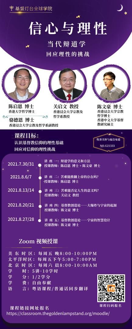 2021年8月網絡聚會 / 講座消息 by Admin · August 1, 2021 歡迎提供教會網絡聚會,線上佈道公開聚會等等的消息或聚會海報,以接觸更廣人群。免費刊登,每則以200字為限,每月15號前截稿。投稿請電郵至truthmonthly@nystm.org。 2021年第93屆港九培靈研經會 2021年信心與理性——當代辯道學回應理性的挑戰