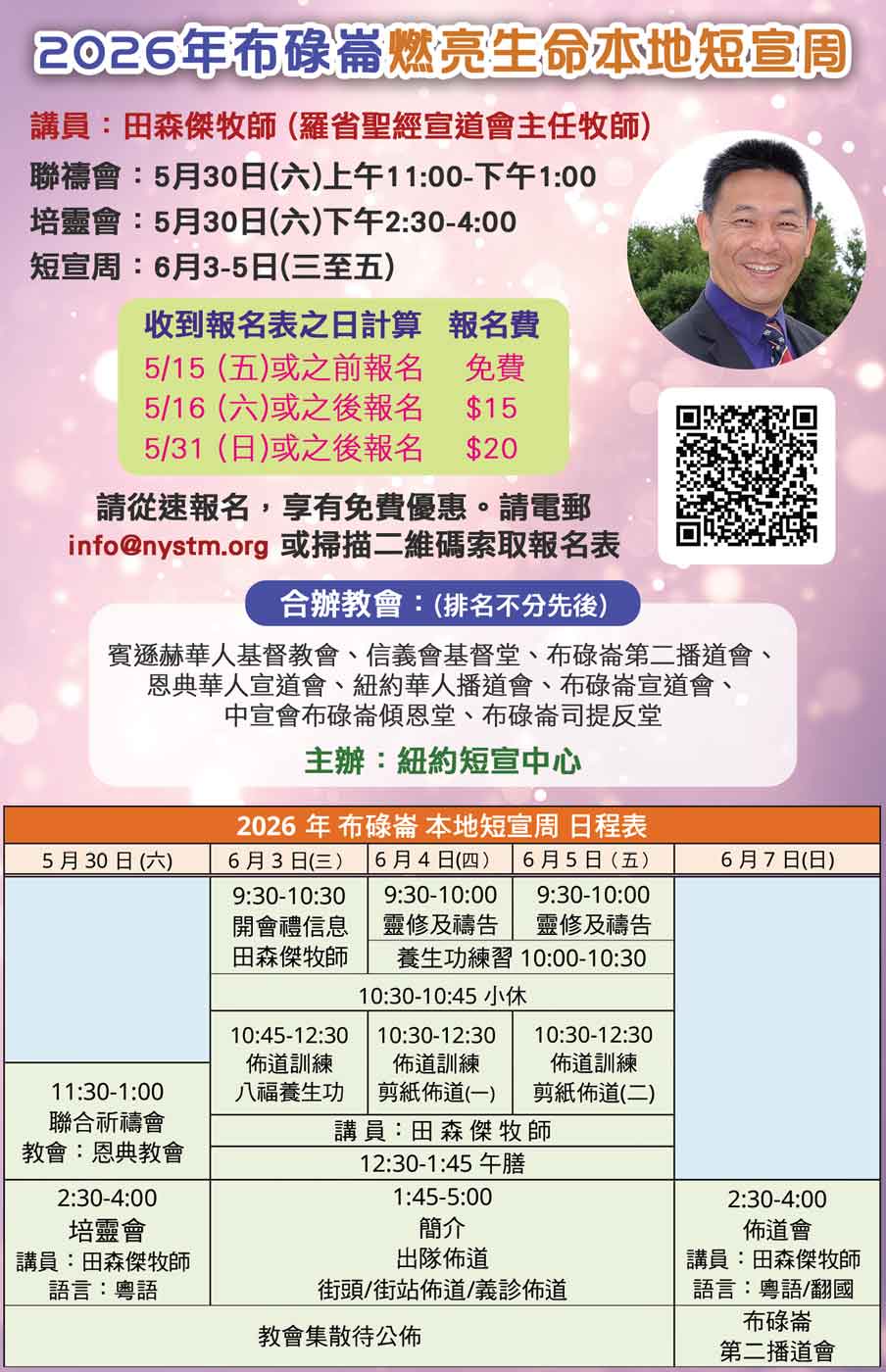 1) 布碌崙燃亮生命:講員田森傑牧師 (詳情請參閱海報)